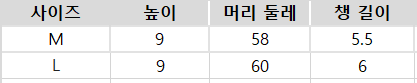 사이즈는 측정 방법에 따라 기재된 치수와 약간의 차이가 있을 수 있습니다.
