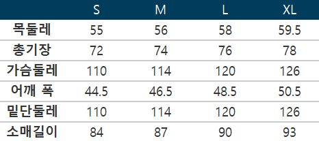 사이즈는 측정 방법에 따라 기재된 치수와 약간의 차이가 있을 수 있습니다.